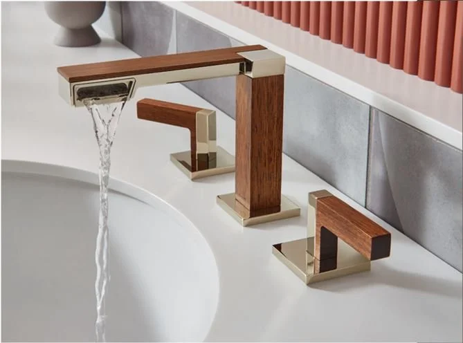 Rich, darker wood tones were featured more prominently than in previous years, showing up in unexpected places like Brizo’s Frank Lloyd Wright Collection, and in appliance pulls and cabinet hardware as seen in True Residentials booth.